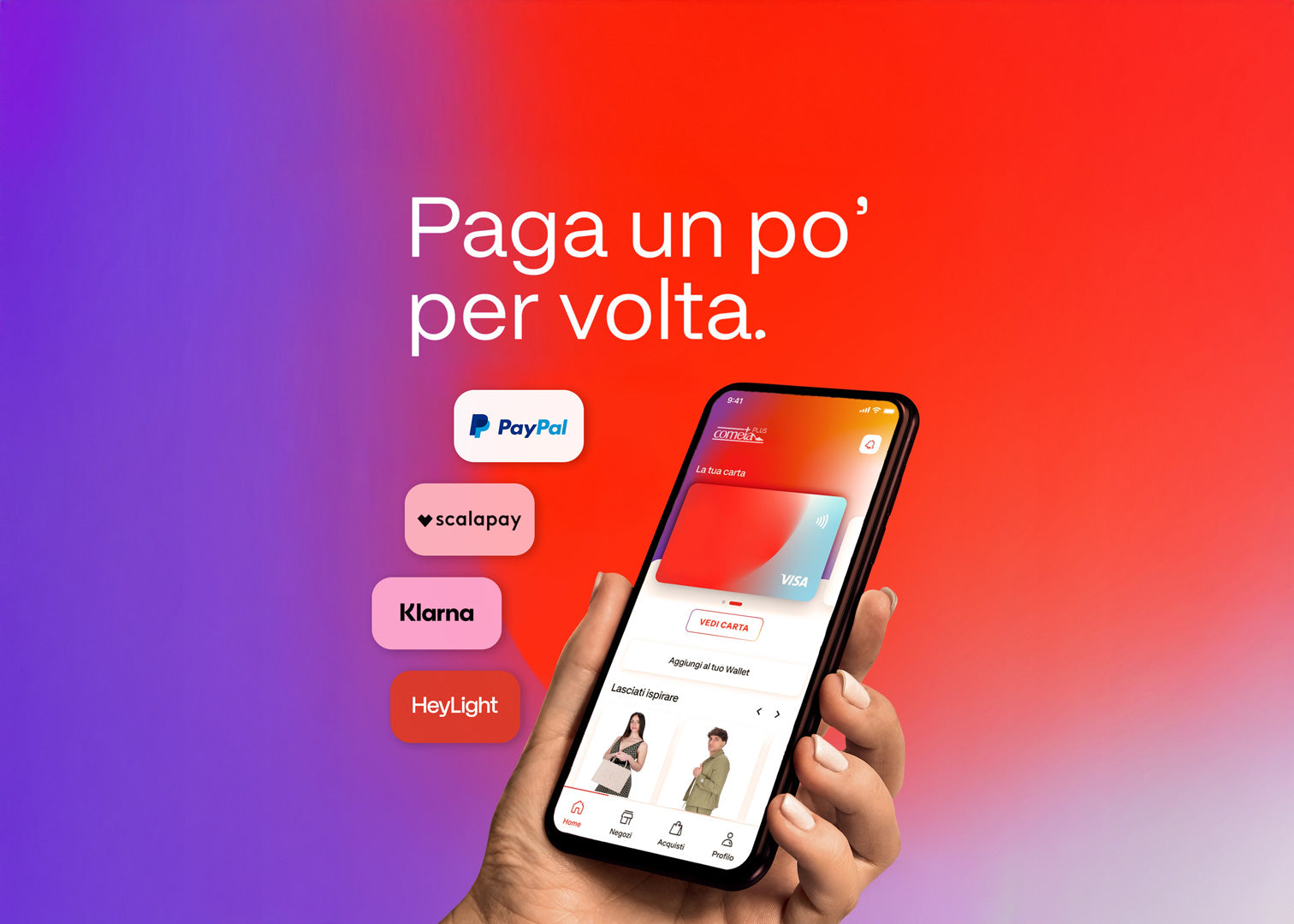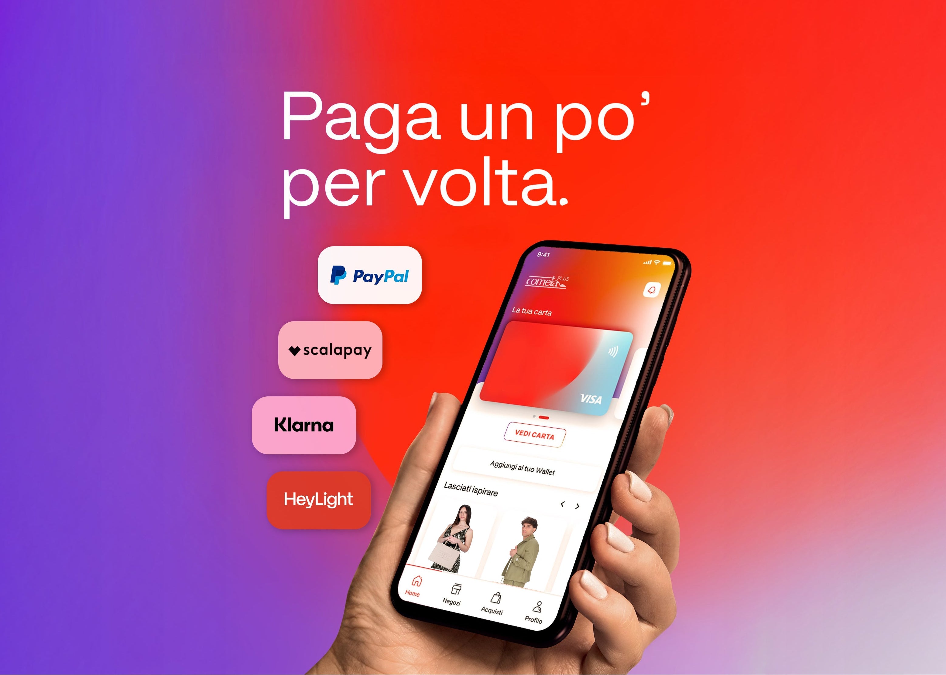 Con PayPal, Scalapay, Klarna e HeyLight puoi pagare senza interessi il tuo ordine in comode rate mensili (da 3 a 6 mesi).